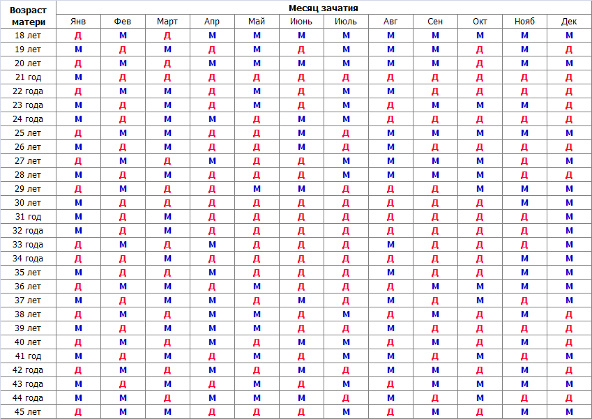 Существуют таблицы, по которым якобы можно определить пол ребенка, зная возраст отца, матери, месяц зачатия и некоторые другие параметры. Давайте их рассмотрим.