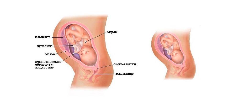 На этом сроке малыш уже должен находиться в положении головкой вниз, прямо над родовыми путями. Именно такой вариант считается самым безопасным для родов. Но также существуют другие варианты предлежания, например, тазовое (встречается оно в 3,5% случаев). В этом положении ножки и попа малыша находятся над родовыми путями. Также редко, но все, же можно встретить косое и даже поперечное предлежание. В этом случае женщине, скорее всего, назначат кесарево сечение.