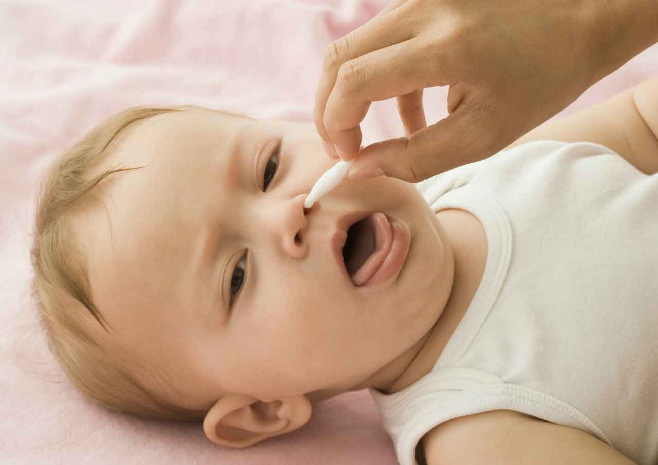По-другому нужно действовать с грудничком. Уложите его на бок и закапайте одну-две капли препарата в ноздрю. Через несколько минут освободите носик от слизи и корок: при незначительном загрязнении используйте мягкие ватные жгутики, при сильном — специальный аспиратор.