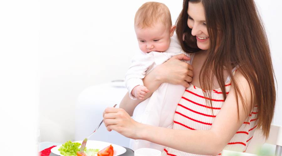 Во время грудного вскармливания, как и в обычной жизни, важен сбалансированный рацион, включающий фрукты, овощи, цельнозерновые, продукты с высоким содержанием белка и продукты, богатые кальцием и минералами.