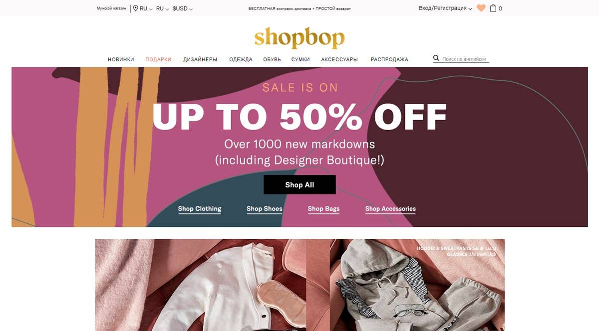 1. — английский супермаркет огромного ассортимента товаров с почти бесплатной доставкой в СНГ. Там есть и одежда, и подарки, и парфюмерия, и электроника (более 150 тысяч товаров), вообщем можно ковыряться часами :).