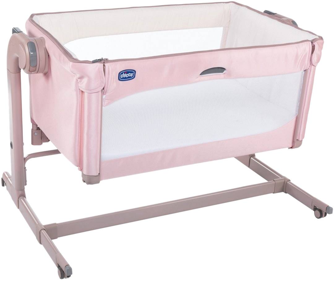 Электронная люлька для новорожденных Chicco Next2Me надежно фиксируется к кровати родителей, используется стационарно. Производитель модели предусмотрел 6 уровней положений высоты, легкую алюминиевую основу, 2 колесика с тормозами, сумку для переноса кроватки-люльки. Боковые вставки из сетки обеспечивают хорошую циркуляцию воздуха. Ткань легко снять и почистить. Спальное место кроватки занимает 93х69 см.