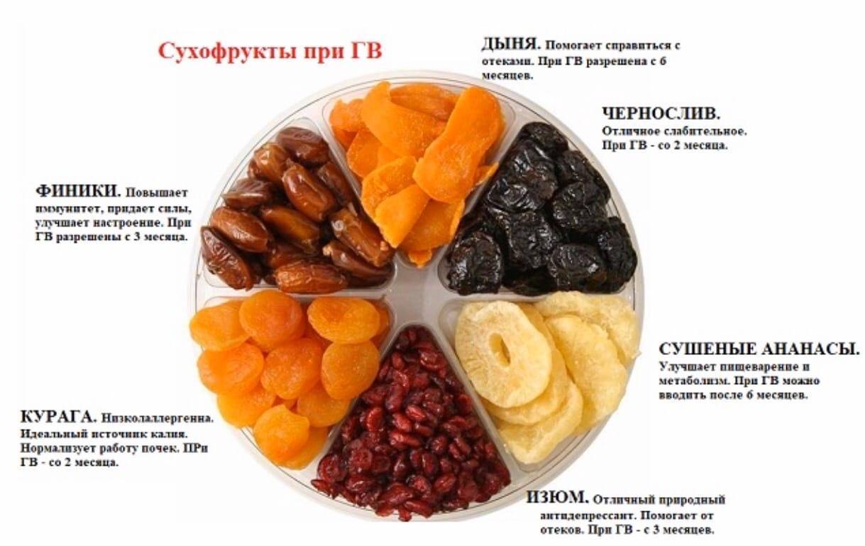 Витамины нужно получать из фруктов и ягод, в том числе замороженных, общий объем порций в сутки составляет 200-300 г. Ежедневное меню кормящая мама может дополнять сухофруктами, которые снижают вероятность появления запоров у младенца.