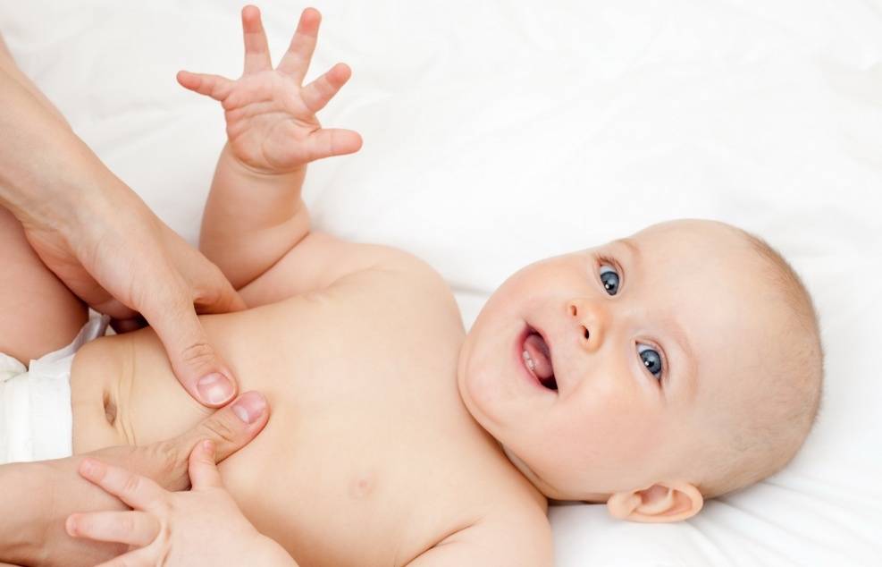 После переворота приступить к массажированию живота. Мягкими круговыми пассами по часовой стрелке погладить животик ребенка, не задевая зону расположения печени. Затем с легким напряжением разгладить косые мышцы. В ходе сеанса следить, чтобы манипуляции не доставляли младенцу неприятных ощущений.