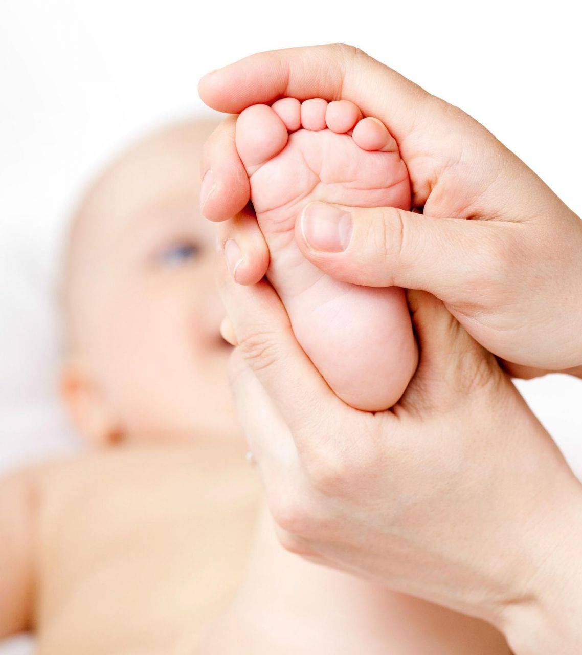 Пользу для малыша принесут растирание и разминание стоп пальцами. В этом месте расположено большое количество активных точек, связанных с работой всего организма. Можно разминать пальчики и стопу, рисовать восьмерки, надавливать на активные точки, постукивать по пятке подушечками пальцев.