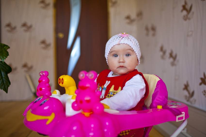 Если родители возьмут во внимание аспект, определяющий, во сколько месяцев можно ставить ребенка в ходунки, вреда развивающемуся организму можно избежать