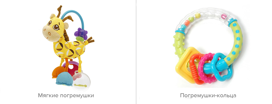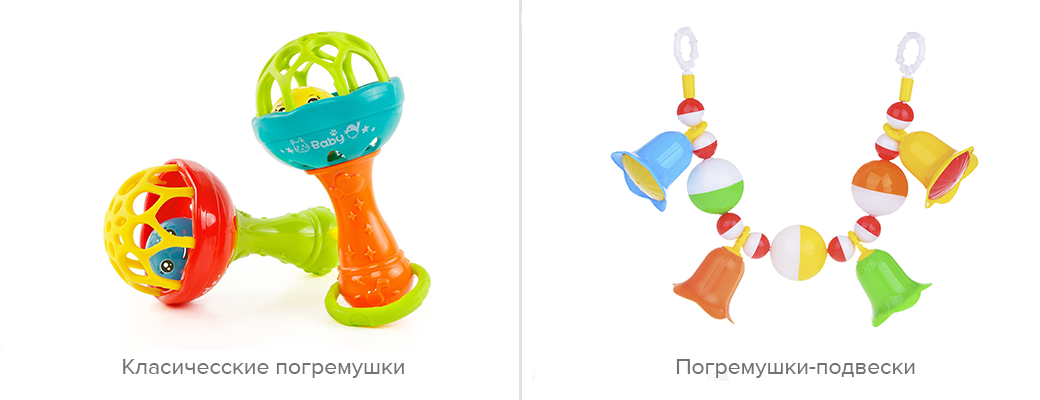 В магазинах продаются все варианты погремушек. Для новорожденного малыша подойдут игрушки небольшого размера с бусинами внутри, которые издают звуки во время игры. Музыкальные и головоломки подходят для малышей с 6 месяцев.
