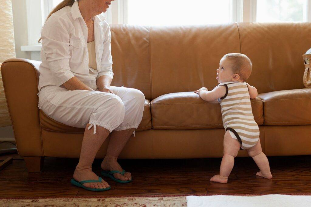 - Чрезмерно опекать карапуза — ребенок должен учиться двигаться сам. Конечно же, родители должные ему помогать и страховать от падения, но учитывать при этом, что малыш должен привыкать к самостоятельным движениями, так как только так он научится ходить без посторонней помощи.