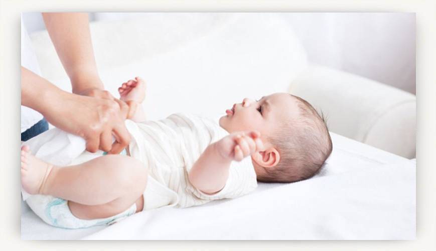 • кроху разместить на прямоугольной пеленке так, чтобы верхняя сторона была на уровне талии;