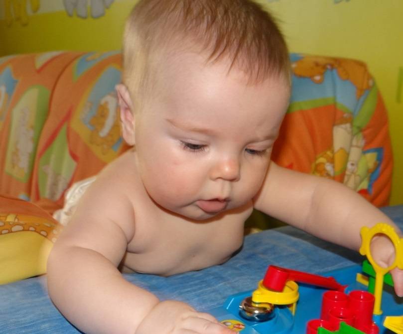 - Выкладывая грудничка на живот, располагайте на небольшом расстоянии доступные игрушки (все требования к подбору игрушек обязательно соблюдать: безопасность, гигиену, возрастные ограничения).