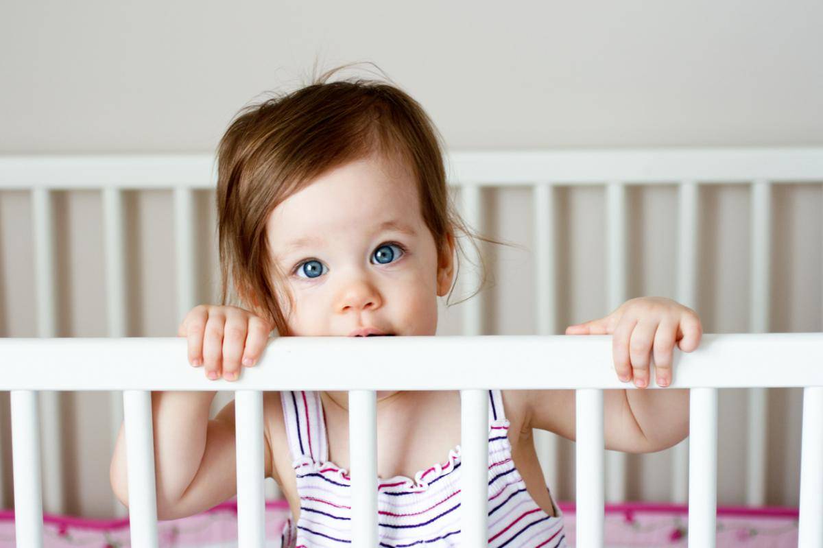 Малыш учится ходить, понимает, что может подняться в кроватке сам, держась за борт, или активно начинает говорить.