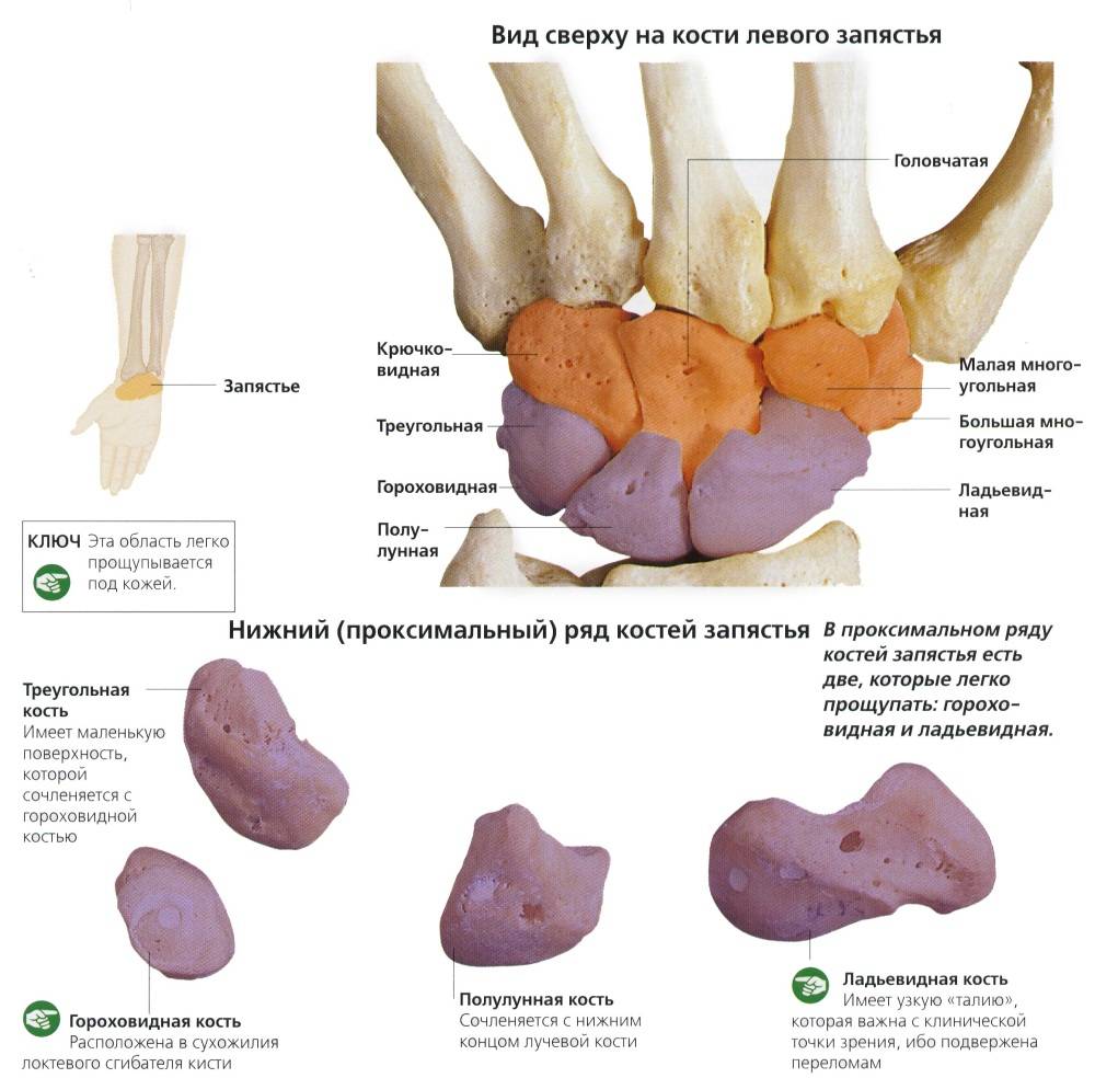 - запястье: полулунная, ладьевидная, трехгранная, трапециевидная, гороховидная, трапеция, крючковидная, головчатая;