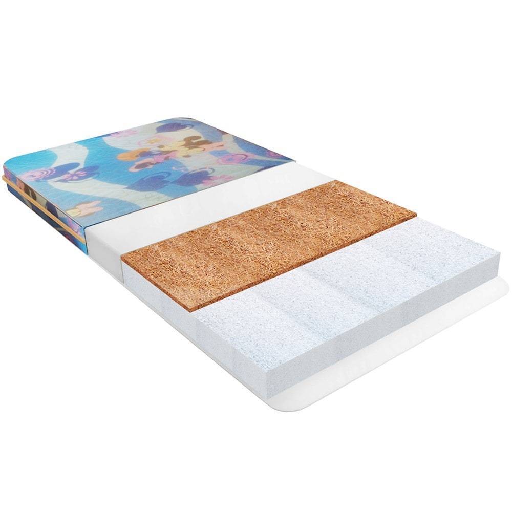 Сегодня рынок предлагает детские матрасы с сочетанием искусственных, натуральных волокон и плит. Есть вариант чередования кокосовых и латексных плит. Количеством, толщиной плит подбирается оптимальная для детского здоровья жесткость. С наружной стороны оставляют кокос, с противоположной – латекс. Поэтому с одной стороны всегда есть жесткий слой кокосовых волокон, который полезен для спинки малыша. Сторона средней жесткости наполнена пенополеуретаном или латексом. Она более мягкая, подойдет подросшему ребенку.
