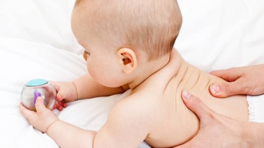 - Переверните ребенка на бочок.