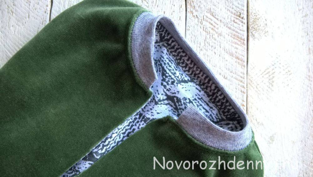 - Трикотажным швом стачайте эти детали по всему периметру, кроме горловины, и то же самое проделайте и с деталями из подкладочной ткани.