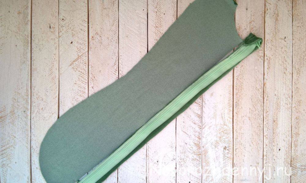 Заранее необходимо подготовить отрез 120х150м, замок, нитки и флизелин. Пошаговый процесс: