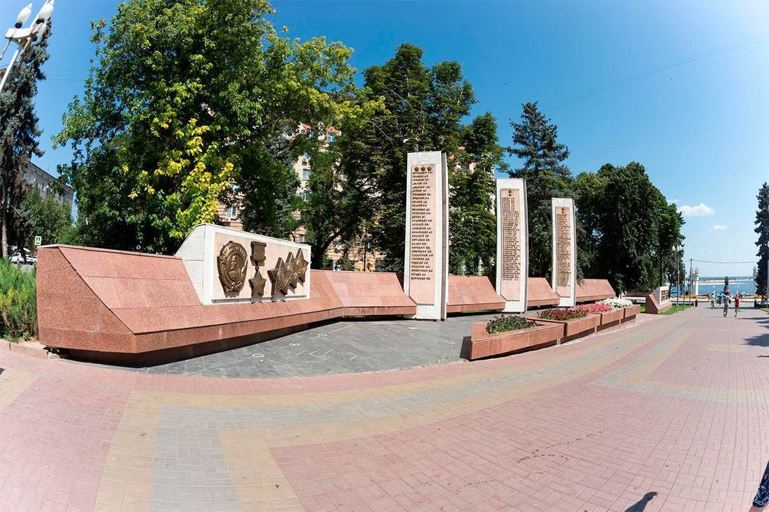 В самом центре Волгограда, между Центральной набережной и площадью Павших Борцов, находится Аллея Героев, состоящая из трех параллельно идущих улиц. Одним из основных архитектурных элементов аллеи являются стелы, на которых увековечены имена 127 Героев Советского Союза, посмертно удостоенных этого звания за подвиг, совершенный здесь, на сталинградской земле.