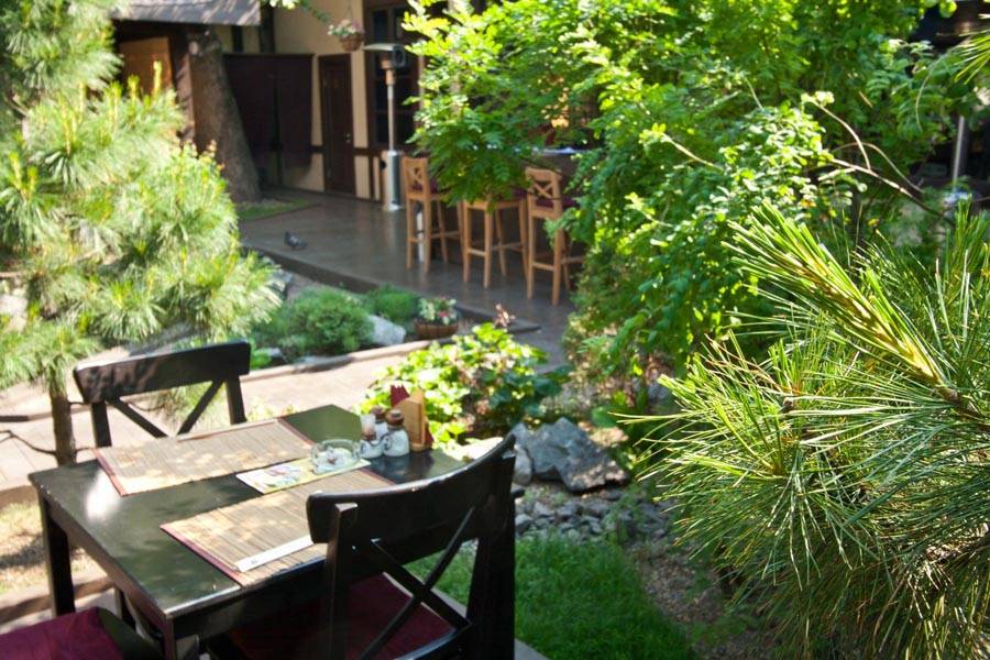 - Киото на Карла Маркса 13. Заведение обязательно рекомендуем в период летнего сезона, тут одна из лучших летних веранд со своим внутренним миром. Средний чек высокий, но полностью компенсируется спокойной атмосферой. Тел: +7 395 255-05-05.