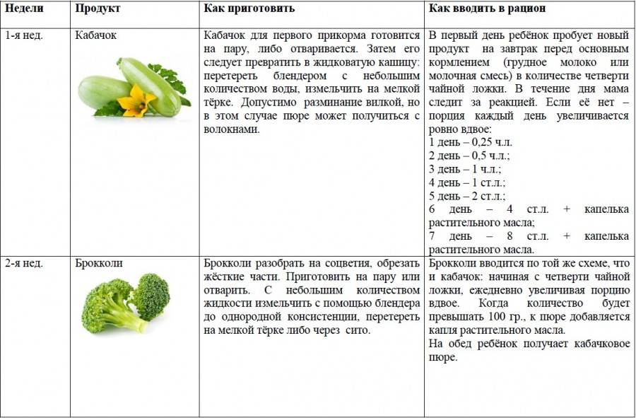 - после ввода каждого ингредиента выдерживают паузу в 10-14 дней до ввода второго; так, иногда между знакомством с очередным кабачком может пройти до одного месяца, страшного в этом ничего нет;