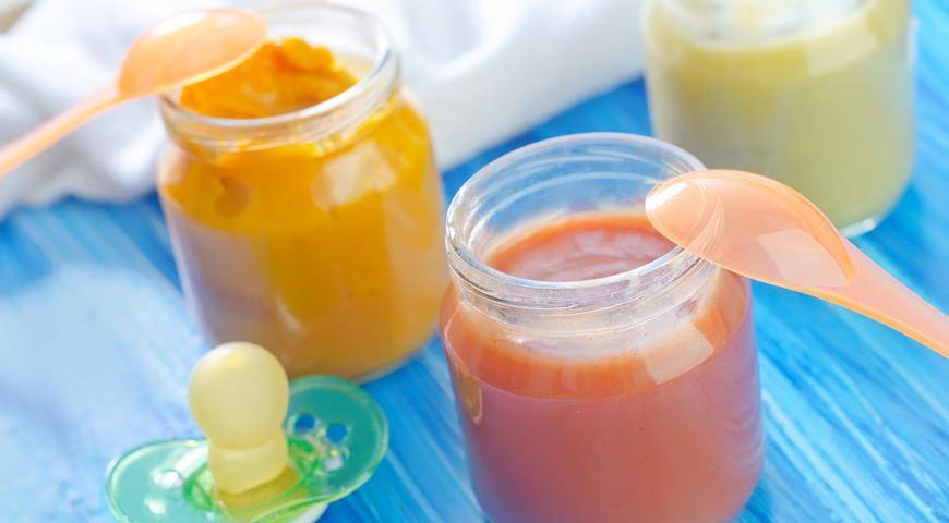 В качестве прикорма могут использоваться готовые мясные, овощные и фруктовые консервированные пюре, сок и растворимые каши