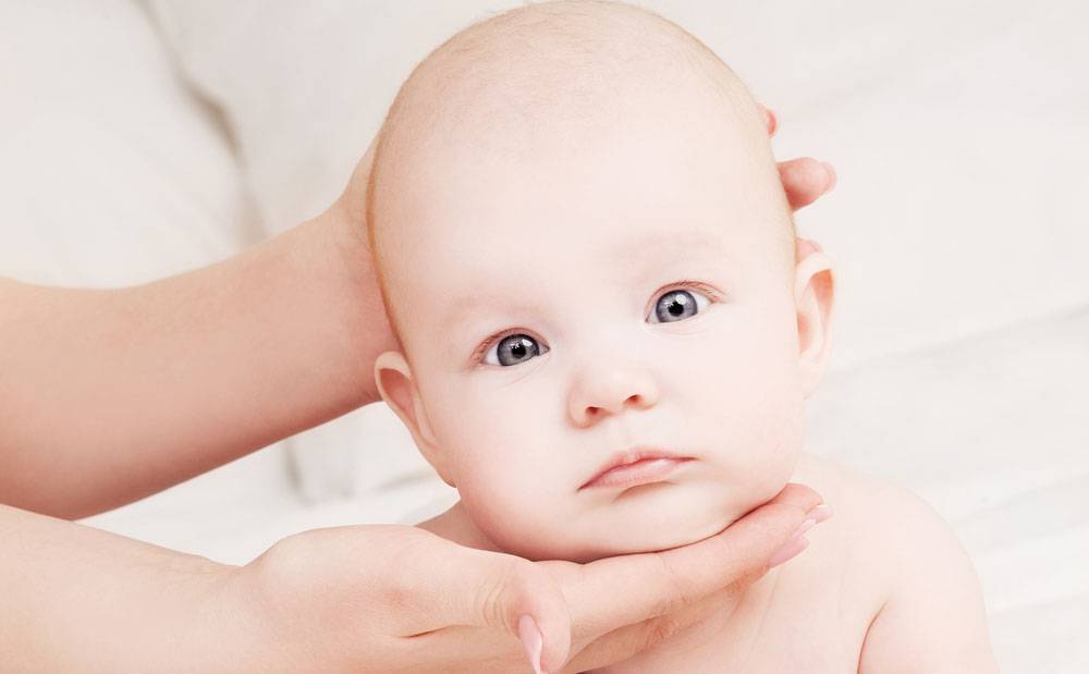 При таком диагнозе положение головы грудничка неправильное: голова наклонена в сторону, подбородок направлен в противоположную сторону. При этом малыш не может поворачивать голову в другом направлении.