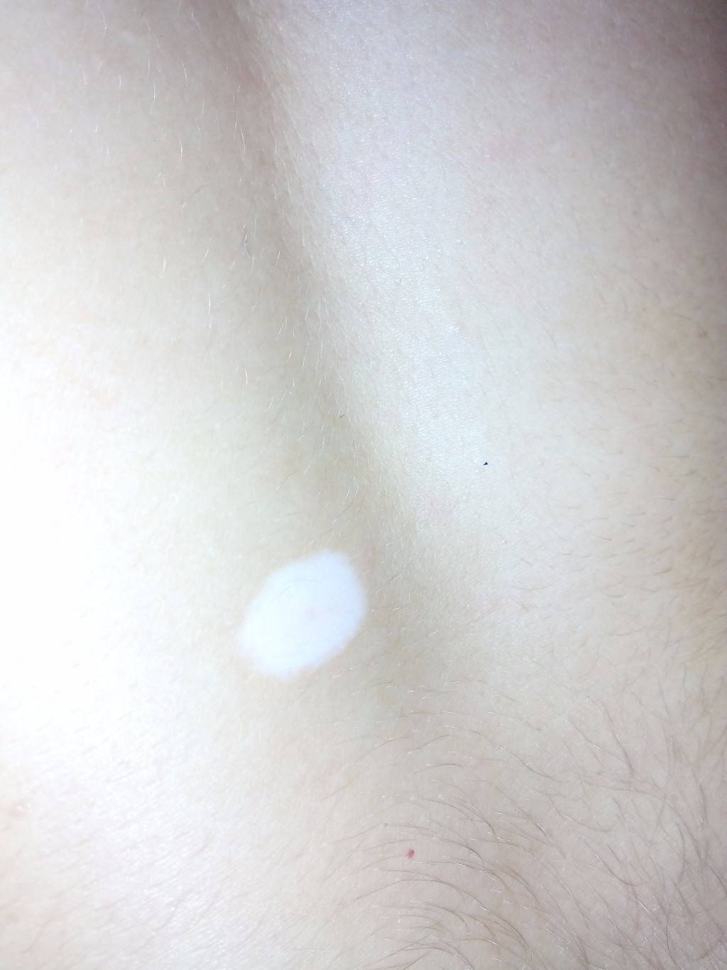 Идиопатический каплевидный гипомеланоз–высыпания небольших светлых пятен диаметром 1-4 мм, локализованные как правило на открытых участках кожи, подвергающихся инсоляции. Чаще всего это предплечья, голени, зона декольте. Количество меланоцитов в области пятна снижено на 50%. Наиболее часто данное заболевание наблюдается у женщин со светлой кожей. Высока роль генетического фактора, каплевидный гипомеланоз наблюдается и у близких родственников. Проявления идиопатического каплевидного гипомеланоза становятся более выраженными по мере увеличения времени, проводимого под солнечными лучами. Главное отличие от витилиго – это небольшой диаметр пятен, а также сохранение пигментации волосков. При витилиго волосы на пораженном участке также становятся депигментированными. Кроме того, белая пигментация на лице при гипомеланозе – достаточно редкое явления, в то время как при витилиго эта область поражается достаточно часто.