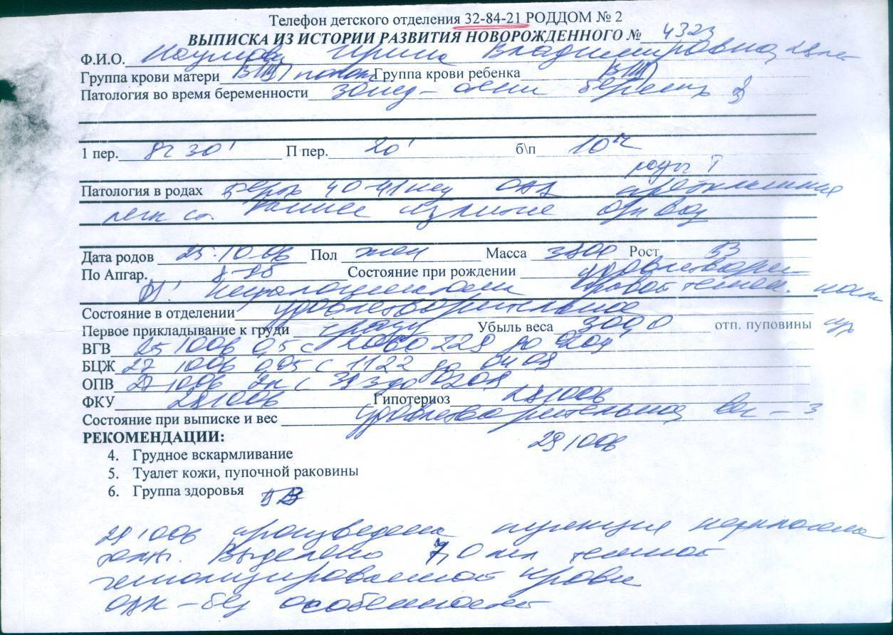 - Обменная карта самого ребёнка, в которой фиксируются все параметры младенца, а именно, девочка или мальчик, сколько весит, какой рост при рождении и т. д. Кроме того, в карту занесена информация о состоянии здоровья малыша и о различных выявленных патологиях после родов.
