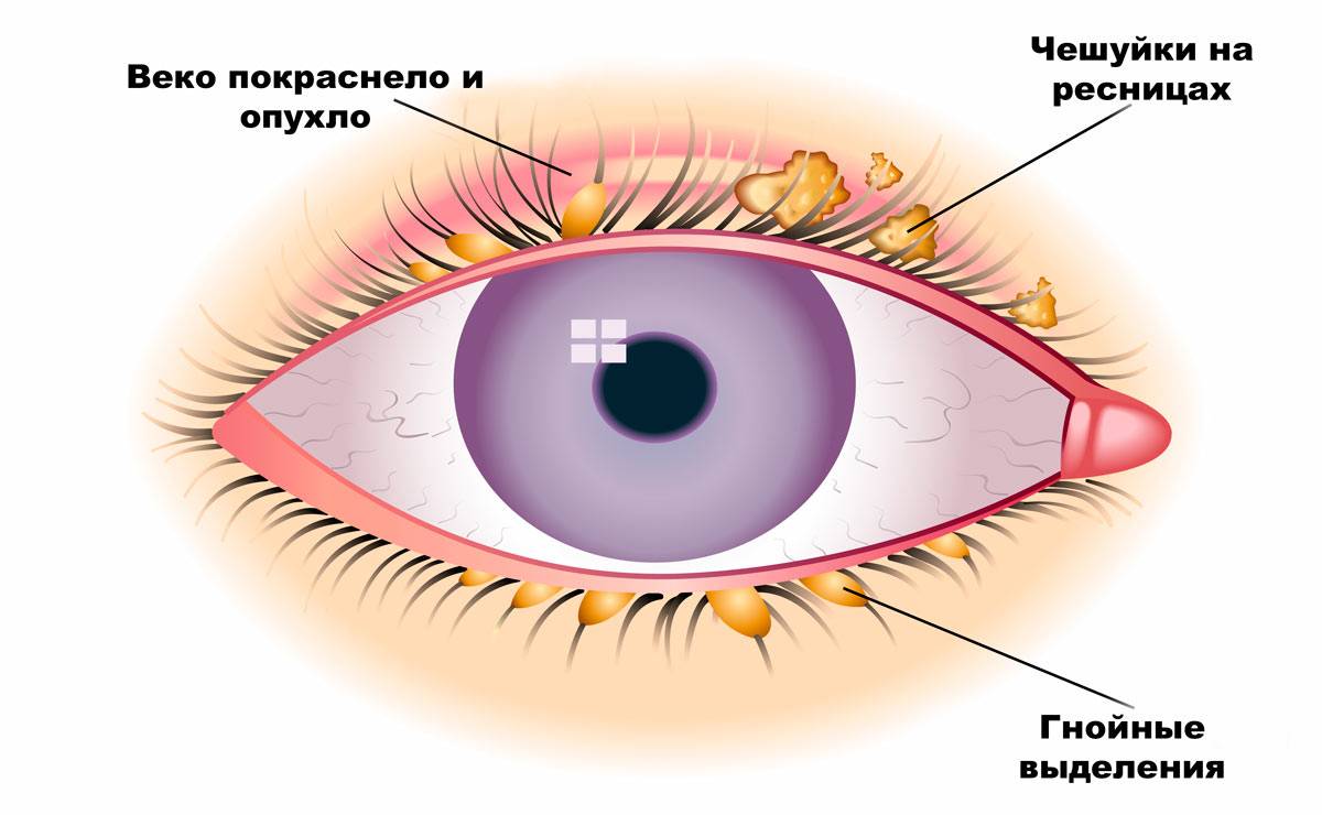 - блефарите – воспалении век, вызываемом различными инфекциями и длительной реакцией на аллергены
