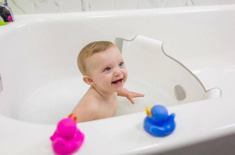 Уровень жидкости не должен быть выше шеи, чтобы младенец не наглотался воды и она не затекала в уши. Но если ее будет слишком мало, ребенок может быстро замерзнуть;
