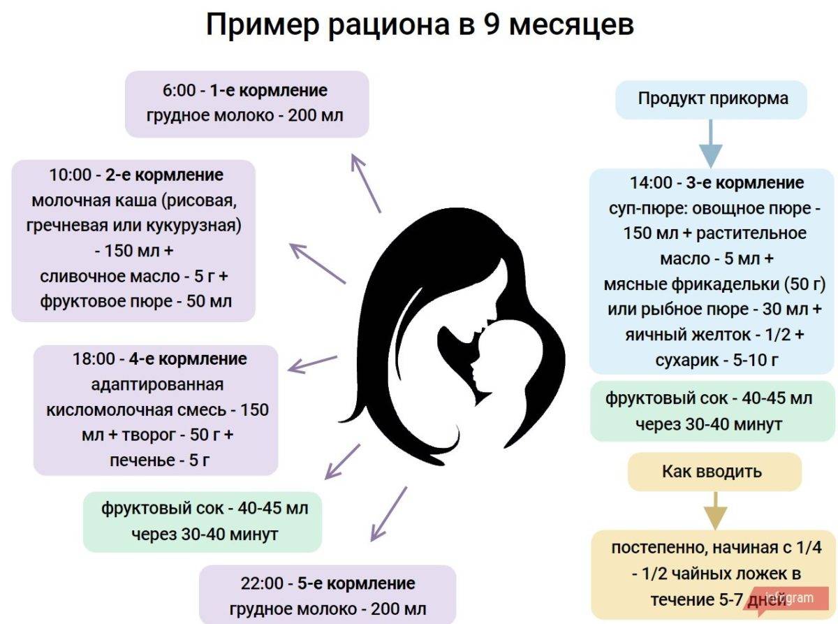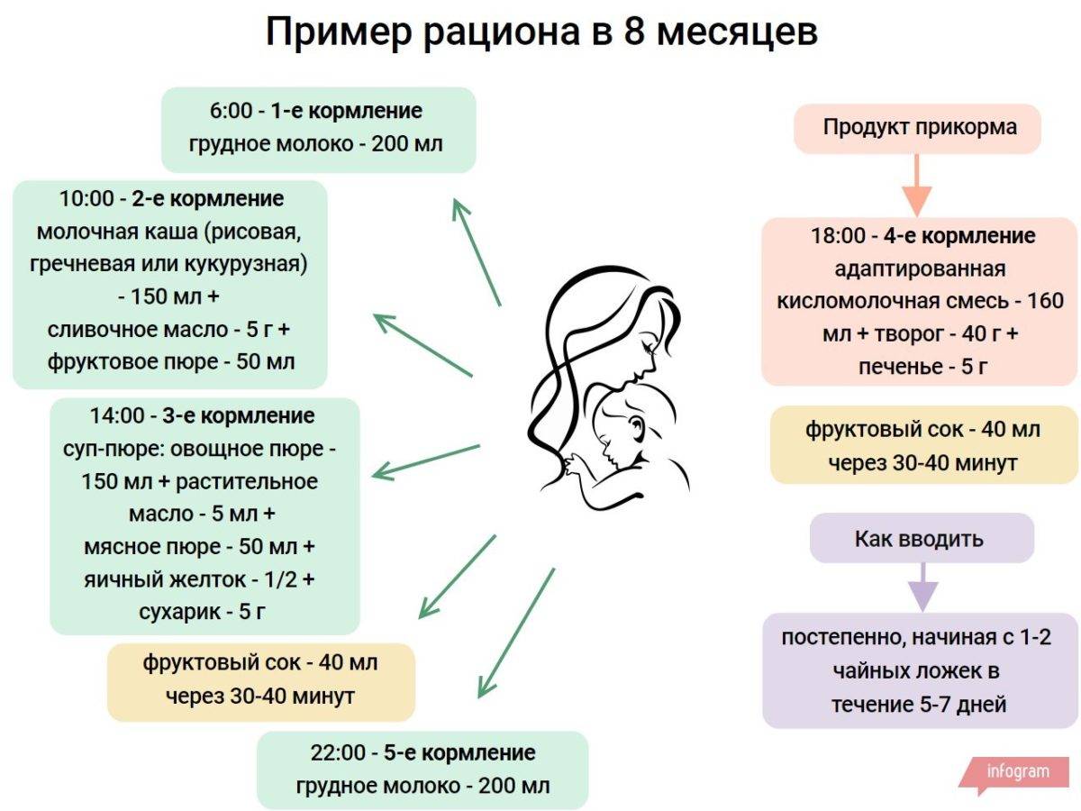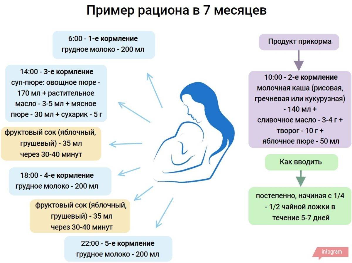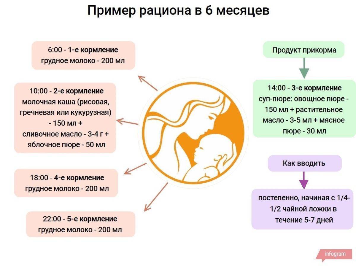 Несмотря на введение прикорма, важно продолжать кормить ребенка материнским молоком. Ежедневная рекомендованная норма приема по месяцам:
