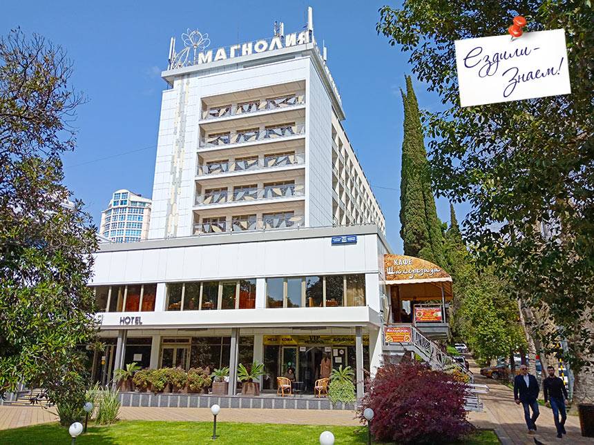 Посмотрите отель “Магнолия” — гостиница советского типа, зато чисто и стоит дешево по сравнению с ближайшими отелями (в этом районе ничего лучше и дешевле не найти). Во всех номерах есть балконы, некоторые даже с видом на море. Кстати, вид из номеров не закрывают другие здания. А главное, — идеальное расположение — все достопримечательности Сочи в пешей доступности.