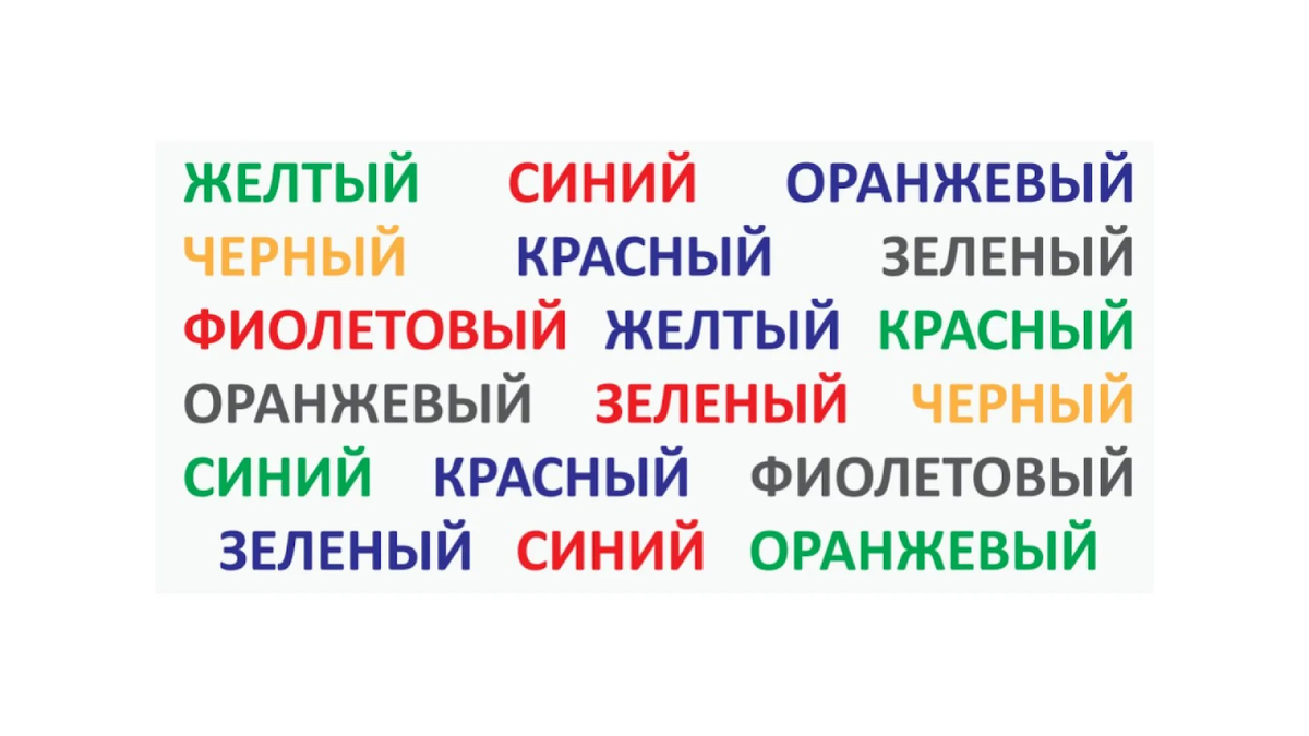 Распечатайте или напишите названия цветов разными фломастерами на небольших карточках. Пусть в наборе будет поровну совпадающих и не совпадающих вариантов. Например, слово «чёрный» должно быть написано на одной карточке чёрным цветом, а на другой красным или зелёным.