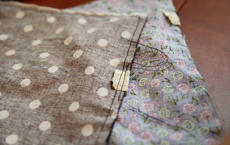 - Необходимо сшить ткань по углам и прострочить так, чтобы получилось ни что иное как чехол для матраса.