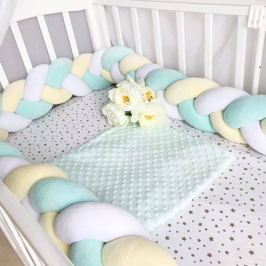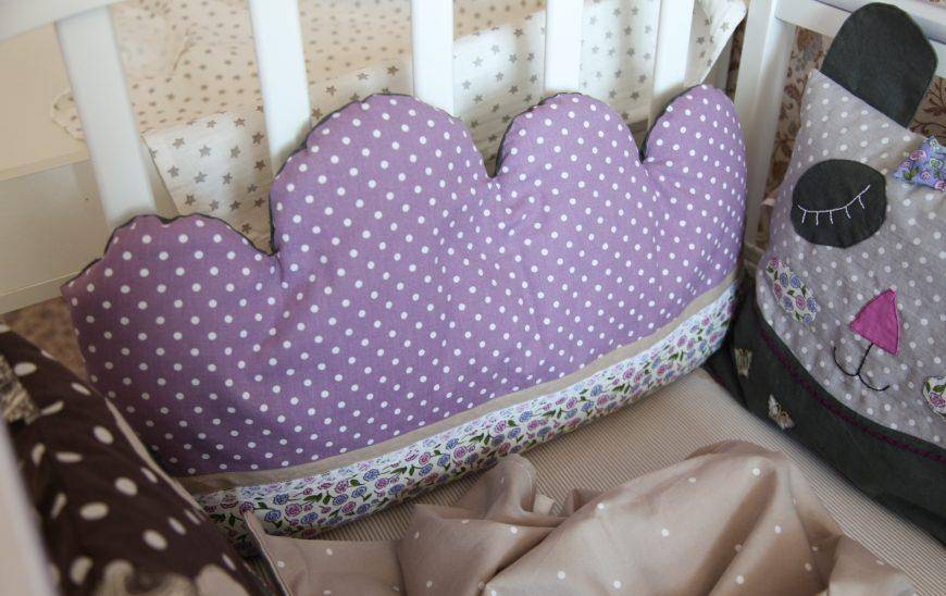 Мягкие бортики для кроватки — длинные бамперы и подушка для изголовья