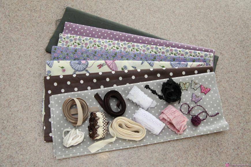 - Отрезы тканей, которые будут использоваться в качестве чехлов и основы для наполнителя.