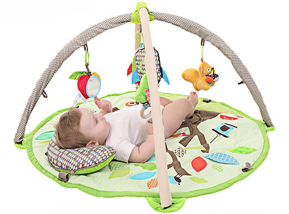 Для развития крохи в физическом плане, совершенствования тактильных ощущений и знакомства с окружающим миром, стоит купить специальный детский коврик с множеством полезных элементов.