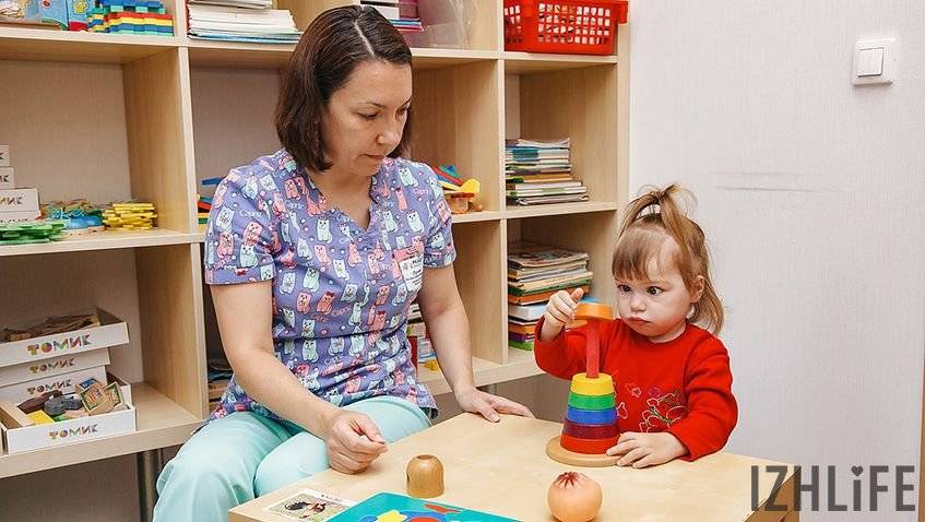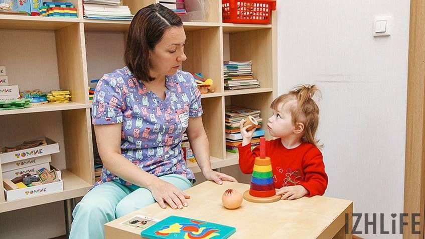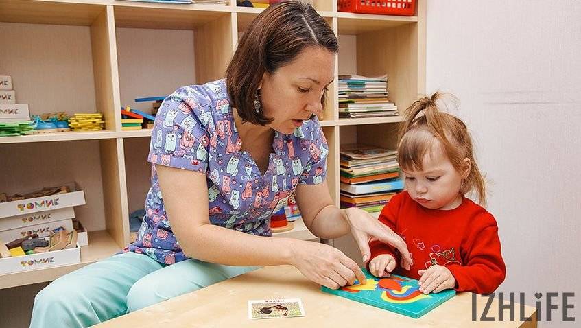 Занятия с логопедом (по показаниям, с 2 лет) направлены на стимуляцию и вызывание речи, на постановку звуков, построение грамматического строя речи, расширение словарного запаса.