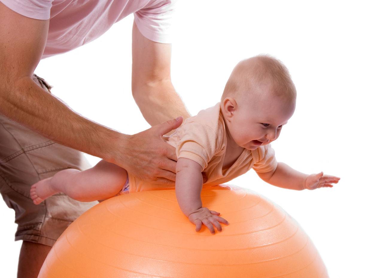 Пристальное внимание также стоит уделить такому превосходному «тренажеру» для мышечного аппарата, как фитбол. В основе занятий заложены рефлекторные движения карапуза