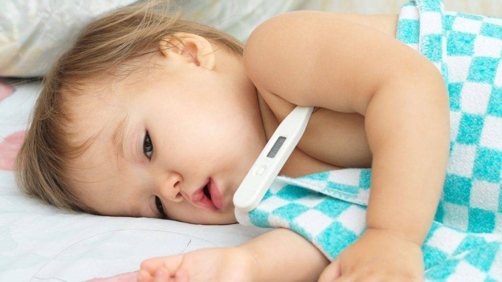 У доношенных детей повышается температура тела, достигая фебрильных цифр, более 38°С.