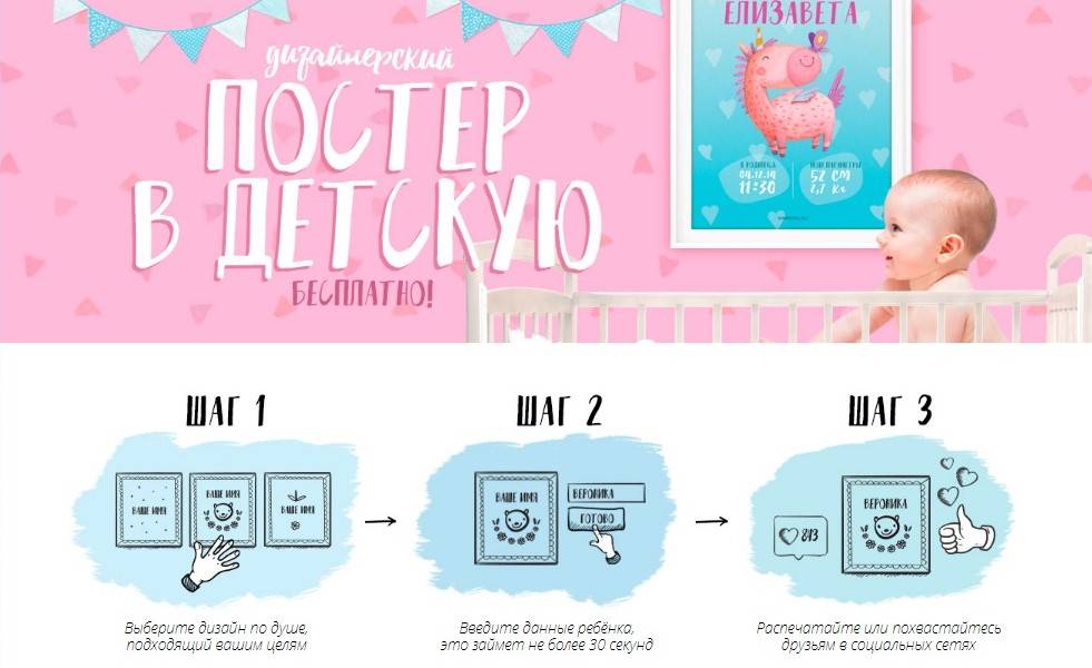 В интернете есть несколько других удобных онлайн-сервисов для создания афиш, плакатов и постеров, но функционал конкретно для детской метрики предусмотрен только у Bambinic.