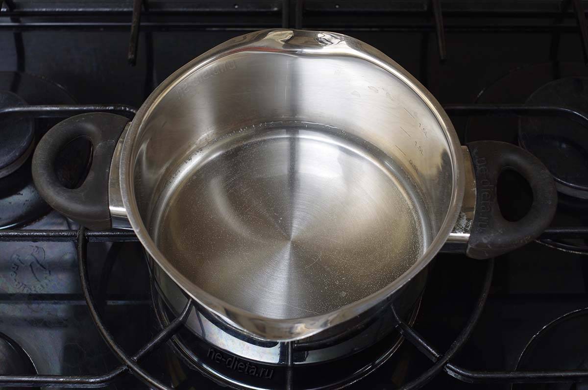 Для того чтобы приготовить молочный суп с вермишелью, в кастрюлю налить воду и поставить ее на средний огонь.