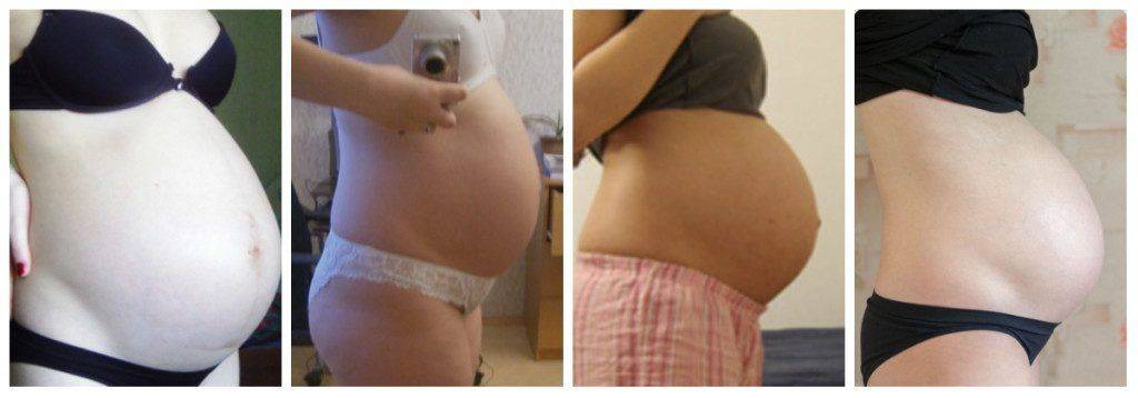 Кожный покров живота все больше натягивается, неравномерное растяжение может спровоцировать появление растяжек — стрий. Чтобы этому помешать, пользуйтесь специальной косметикой для будущих мам: маслами и кремами, предотвращающими разрывы кожи. В рекомендованных количествах смазывайте проблемные места – обычно это грудь, область пупка, внешняя сторона бедра, живот. Делайте массажные упражнения с помощью жесткой щетки. Такие меры если не уберут уже появившиеся растяжки, то будут препятствовать появлению новых.