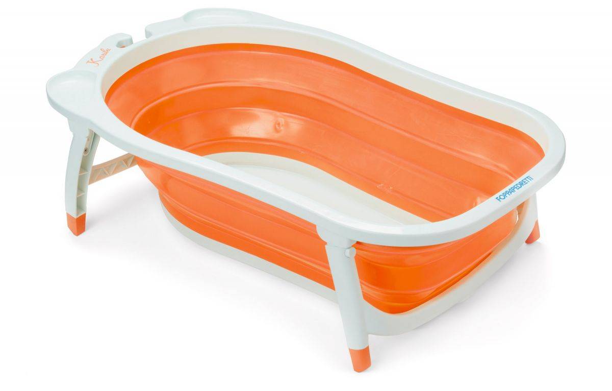Складной. Эта модель ванночки предполагает возможность складывания ее практически пополам. Хранить такую ванночку, особенно в небольшой квартире, очень удобно. В развернутом виде изделие становится полноразмерным и в нем удобно купать ребенка. Предмет защищен от случайного сворачивания специальными фиксаторами. Еще такая ванночка нередко оснащена ручкой для переноса, так что ее легко взять с собой в путешествие.