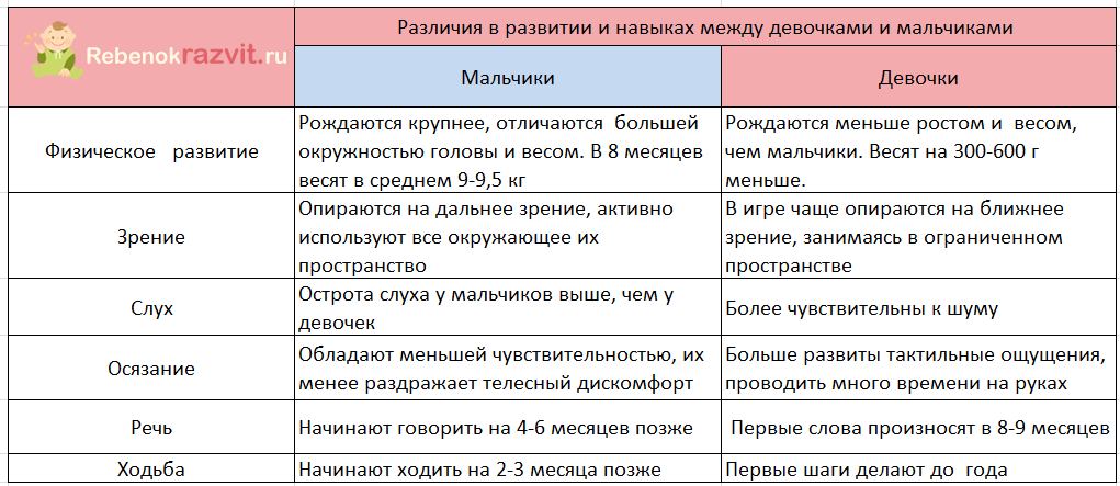 Основные различия между девочками и мальчиками в 8 месяцев мы свели в таблицу: