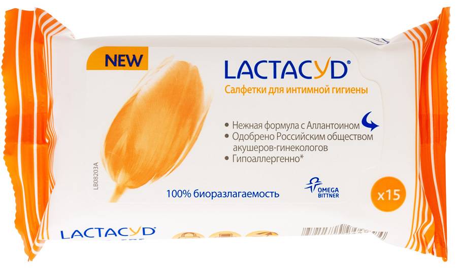 Итальянская фирма Lactacyd кроме обычных очищающих косметических средств производит и влажные салфетки для интимной гигиены. Содержащаяся в них молочная кислота помогает сохранить баланс естественной микрофлоры интимных зон и защитить от инфекций. Также в пропитке содержится Аллантоин, который смягчает кожу и препятствует раздражению.