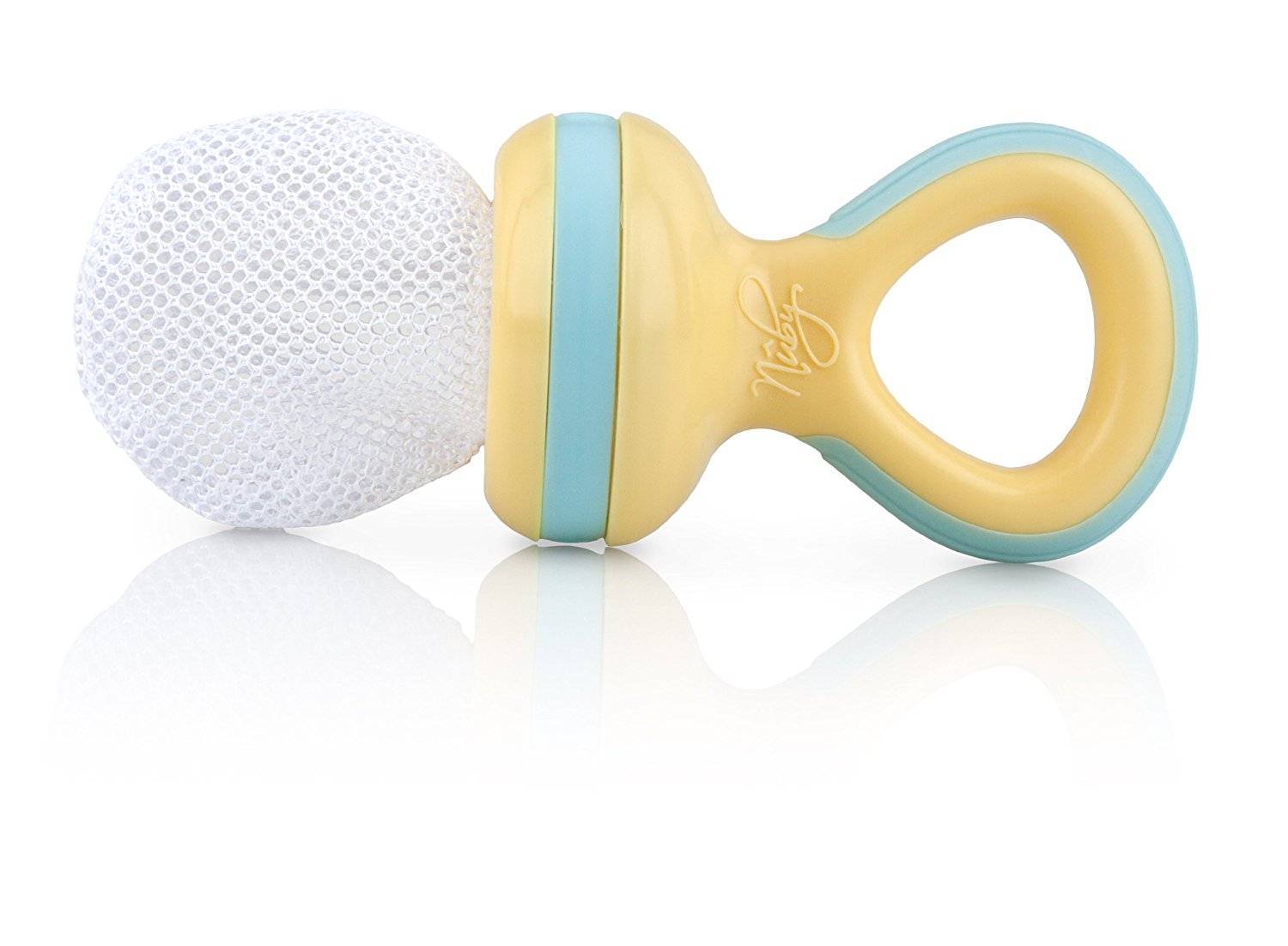 «Nuby» — наиболее универсальный ниблер на рынке. Ведь он имеет два варианта: с силиконовой сеткой и с тканевой. Разница лишь в цене и предпочтениях родителей. Каждый из фруттейкеров компании оснащён прорезиненной ручкой, которая не позволит малышу уронить фидер. Также есть колпачок, благодаря которому ниблер с уверенностью можно брать на улицу или в гости. «Nuby» представлен в разных цветах. Ручки фруттейкера также могут видоизменяться, в зависимости от модели выпуска.