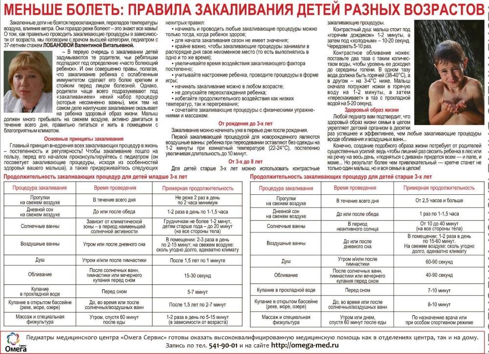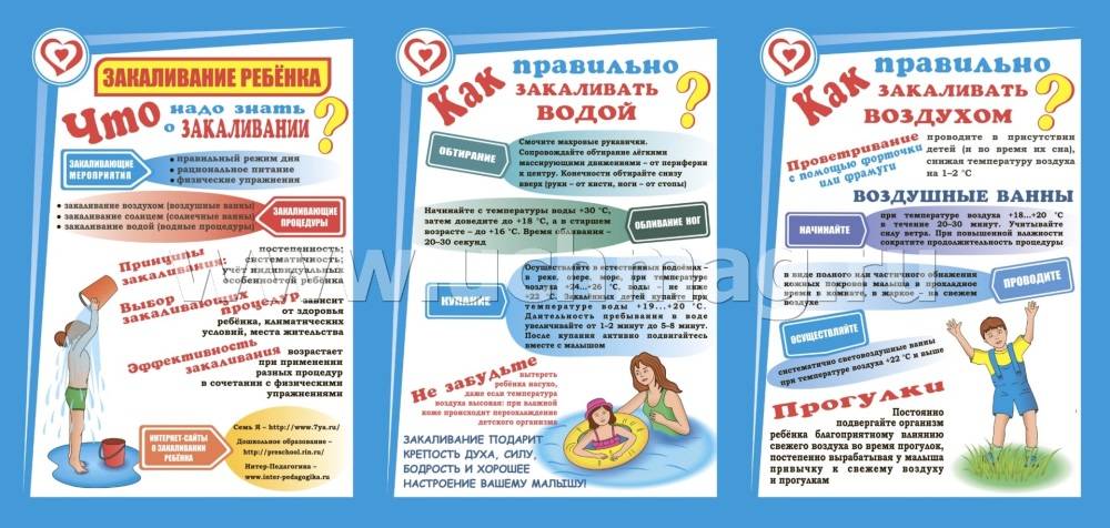 Соблюдайте основные принципы закаливания, учитывая возраст, общее физическое развитие и другие индивидуальные особенности ребенка. Признаками неблагоприятного воздействия закаливающих процедур может быть вялость или нарушение аппетита.